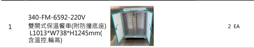 [徵求項目] 膳食供應組「雙開式保溫餐車(附防撞底座)」採購案